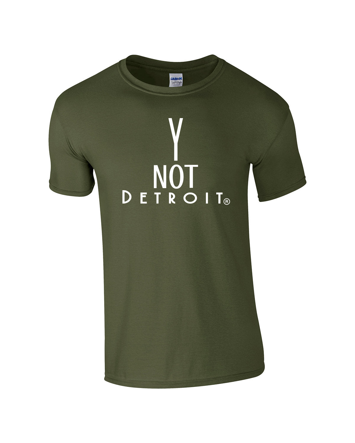 Y Not Detroit logo t-shirt 4.5 oz., 100% preshrunk ringspun cotton jersey.